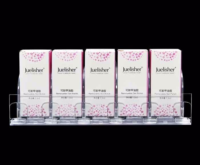 当客人取走摆放在化妆品推进器上面的第一个商品后,后面的化妆品会自动的往前推,始终让化妆品展示在第一位,大大提升了商品的展示能力,不需要专门组织人工去整理货物,节省人工和成本。