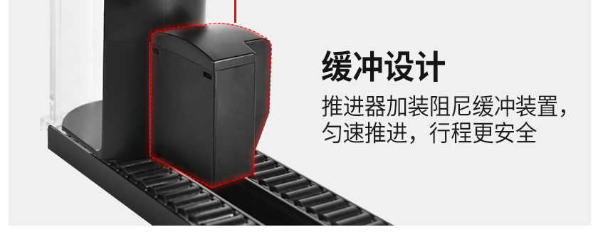 1、缓冲设计:推进器加装阻尼缓冲装置,匀速推进,行程更安全;